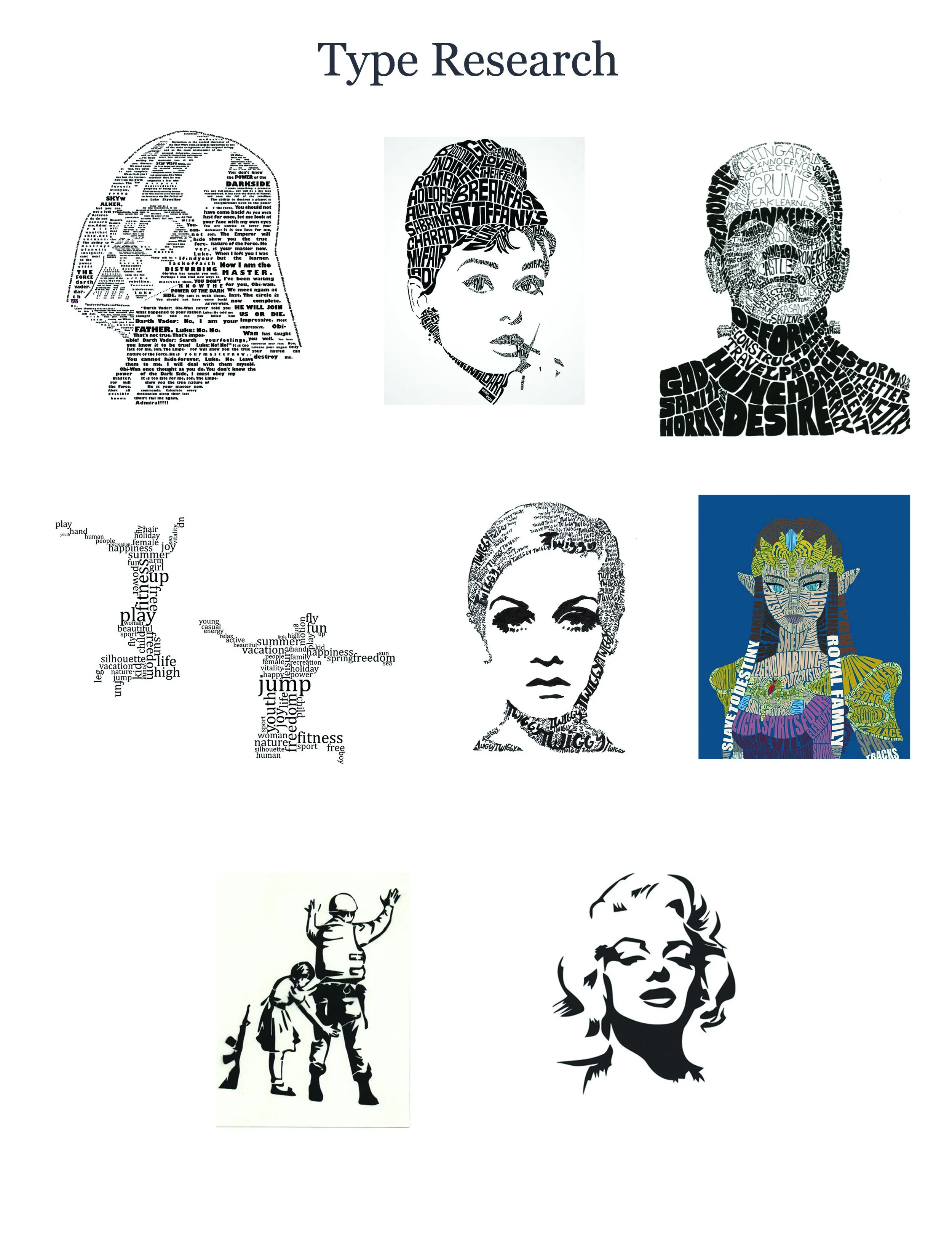 Before we can make anything, we need to have an idea of what we want. I spent a good amount of time searching through pictures and poses, seeing what spoke to me and what I felt could make a good composition. It was a narrowing down process that turned out very rewarding. I then looked at examples ad type work and stencils so I could understand the look I was going for and how I could get there. I also wrote down ideas of what phrases I could write and create with to see what I felt would work best for the image and the message.